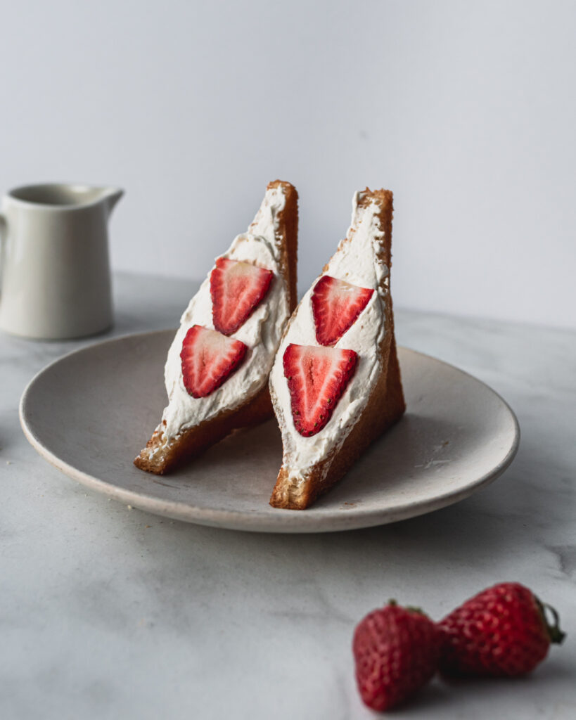 Typically, Japanese fruit sandwiches are not fried. Instead, soft whipped cream and fresh fruit are nestled between two slices of fluffy milk bread. These iconic Japanese sandwiches (also called Japanese Sando) are commonly found at convenience stores.