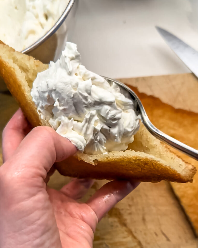 Good quality milk bread that’s at least 1-inch thick will make it easier to create a pocket. Note: the thicker the bread, the easier it will be to create an opening for the whipped cream. Also, don’t fry the bread too long or it will be difficult to open.