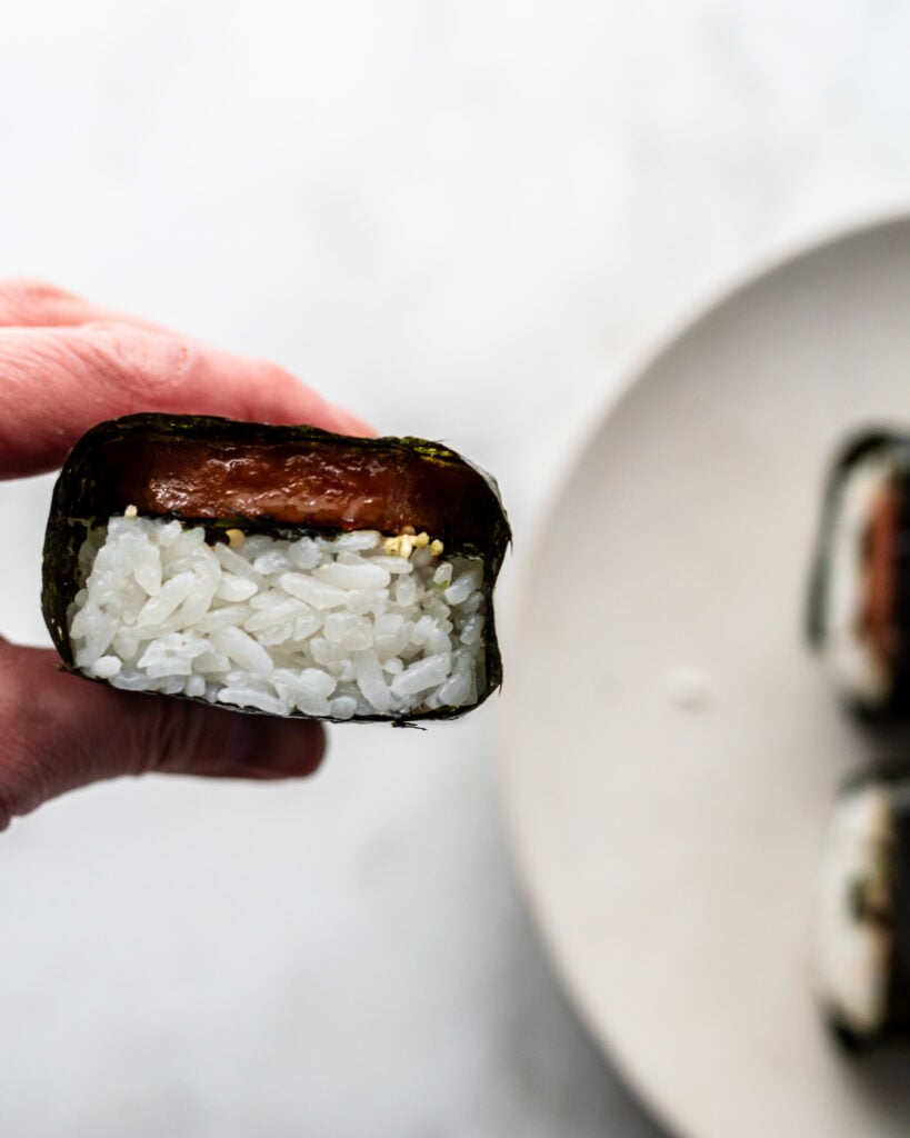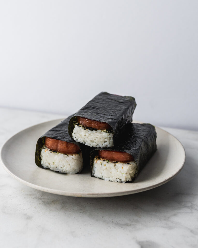 To make at home, there are 3 components: glazed Spam, white rice, and nori wrapping. Together, it creates the perfect balance of salty-sweet flavor.